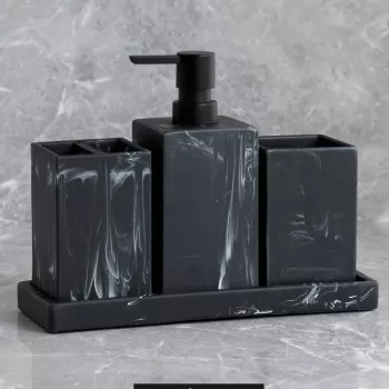 Elegant Black & White Marble Resin Bathroom Accessories 4-Piece Set